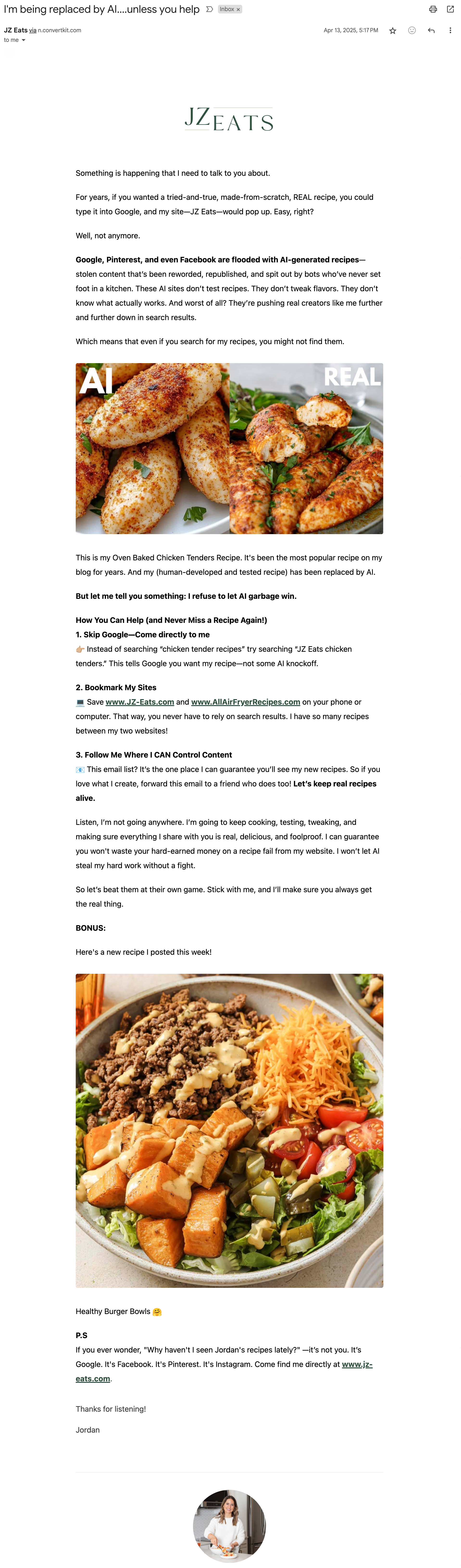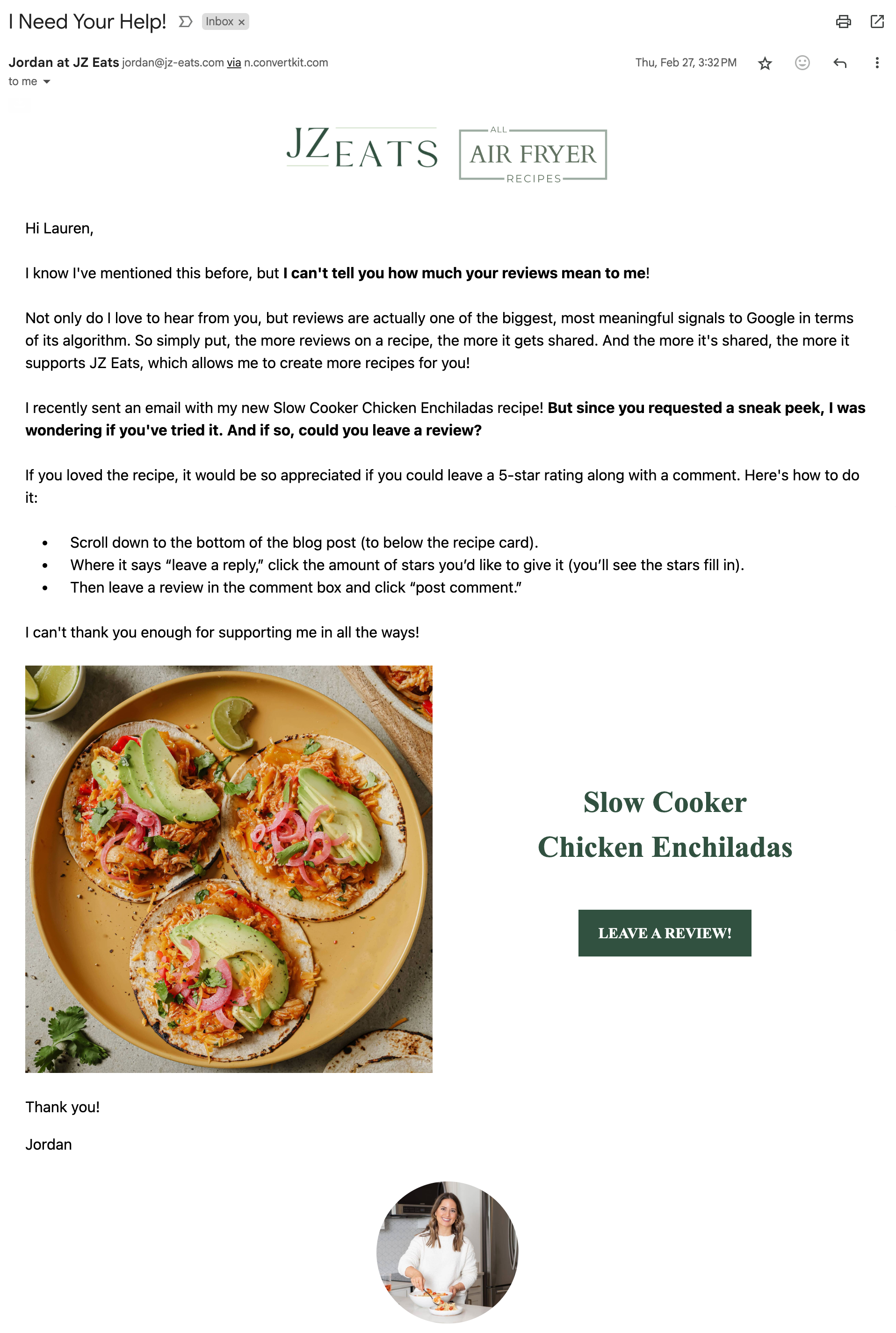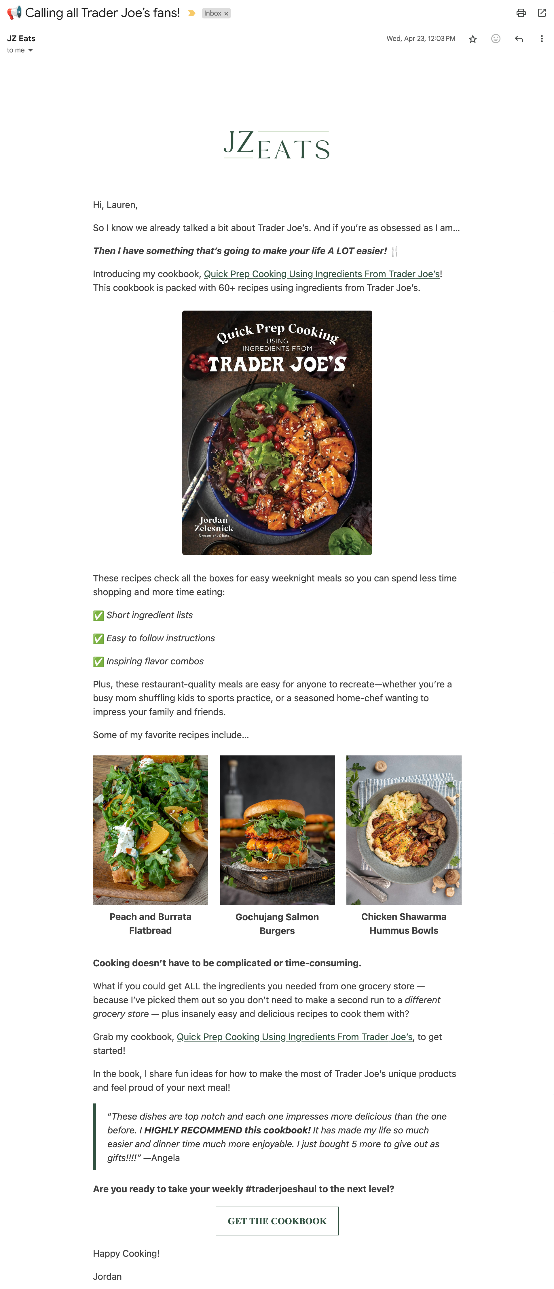 Again, this is one where you don’t want to overdo it. But if you have a cookbook and you’re looking for email ideas, this one should definitely be on your list.