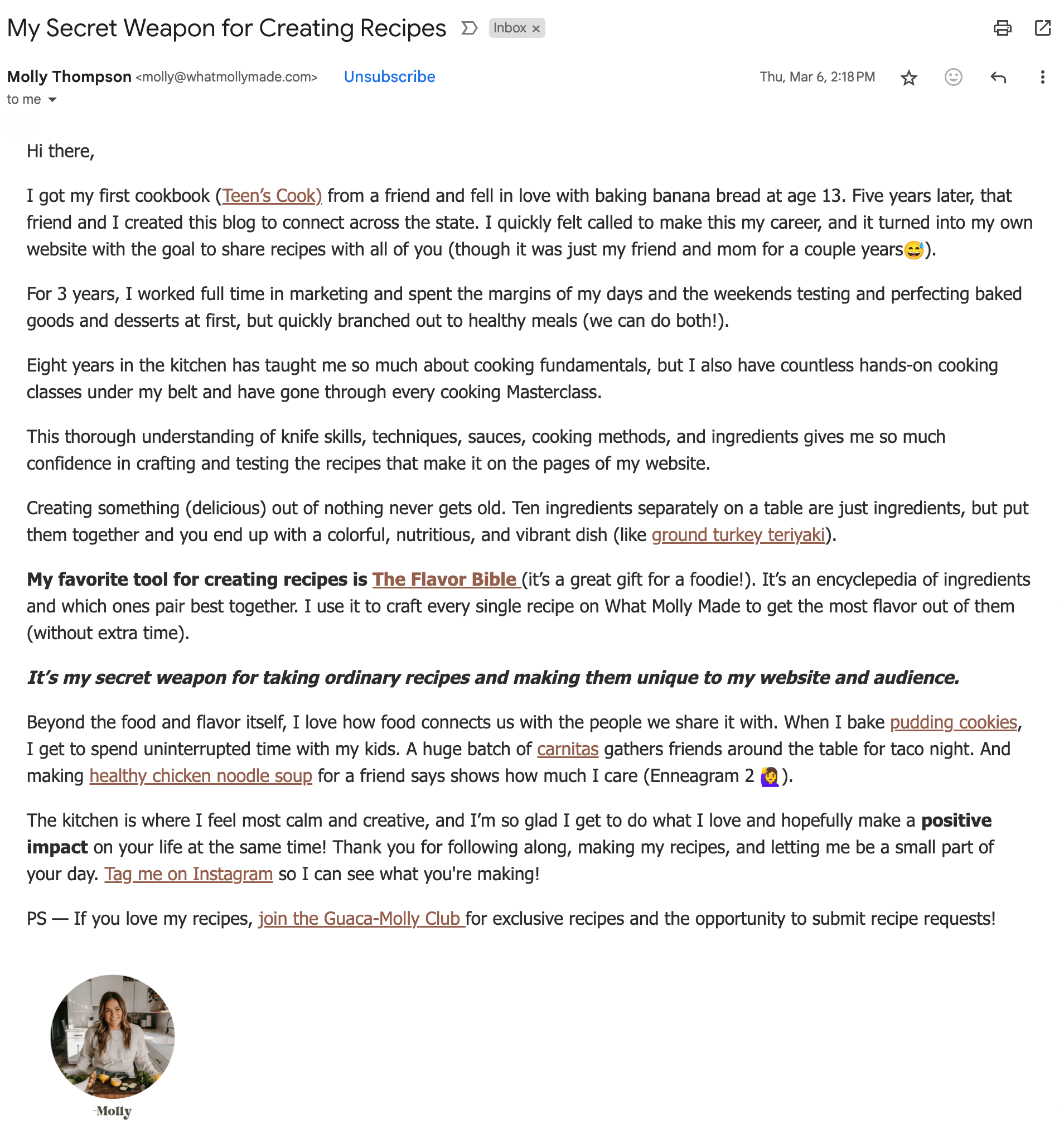 By incorporating a personal story here, she makes this recipe really memorable. Plus, it helps build connection with her audience.