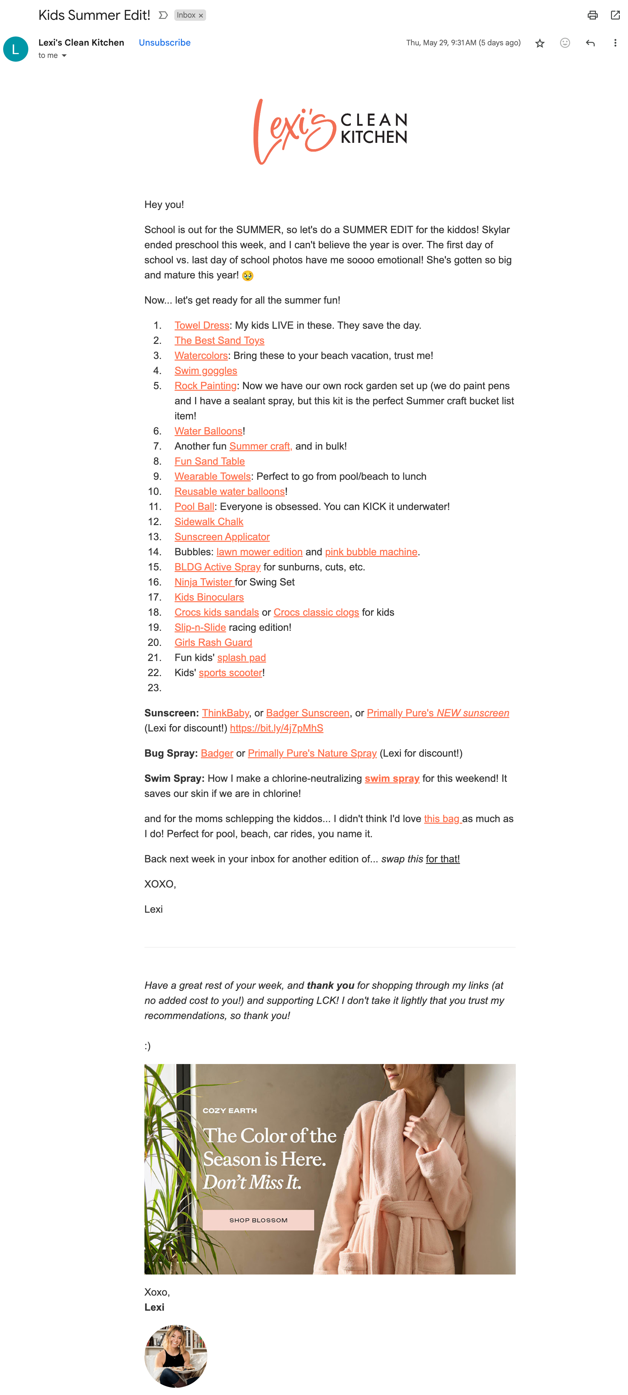 You can also do this for specific seasons, like Lexi does here with her favorite kids products for the Summer: