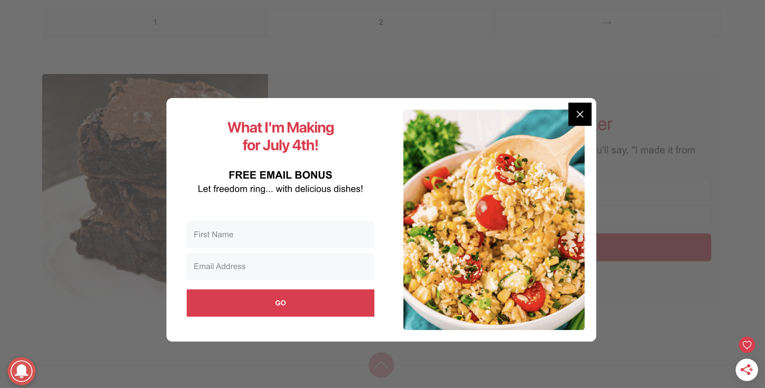 Aimee also adds holiday-specific popups to her site, like this one for the 4th of July: