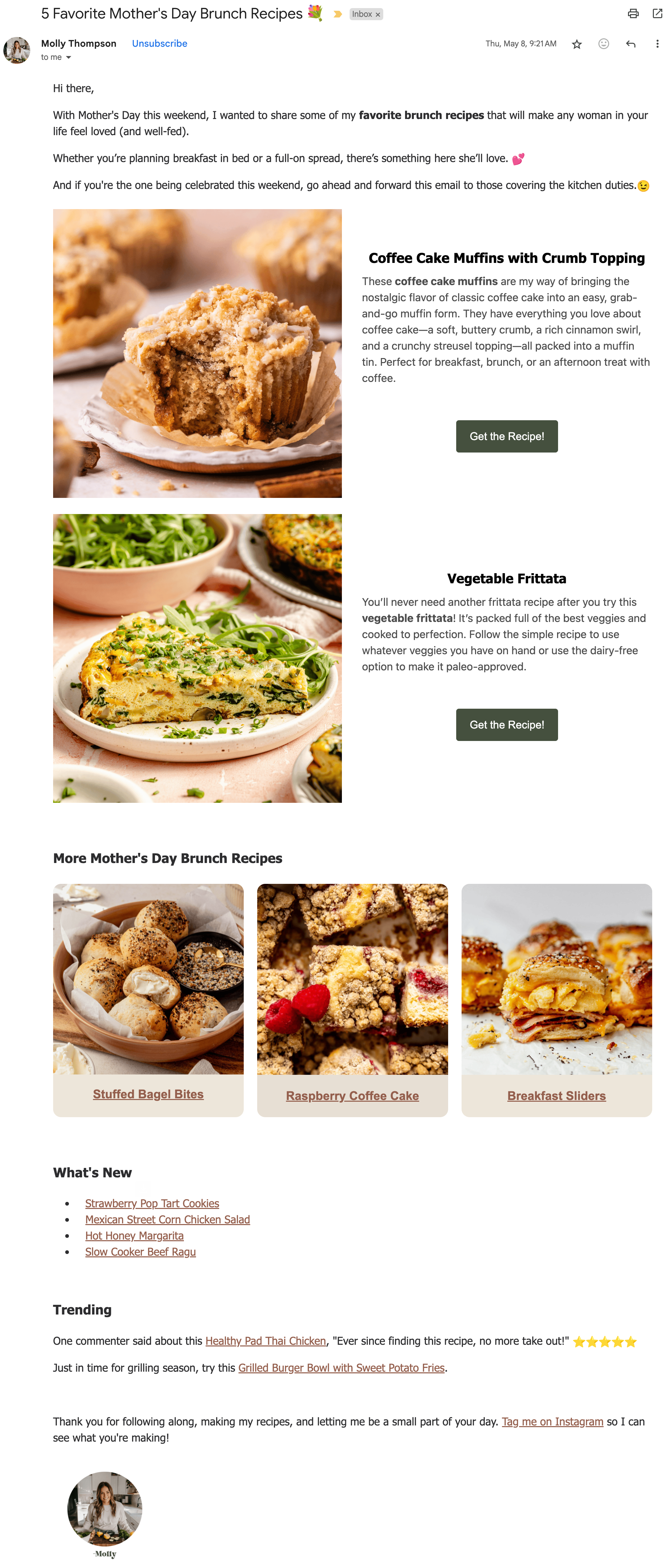 Give a holiday-specific series a shot for the next holiday you have multiple recipes to share. Then, you can compare engagement to your one-off holiday emails and decide if it’s a strategy you want to add to your playbook.