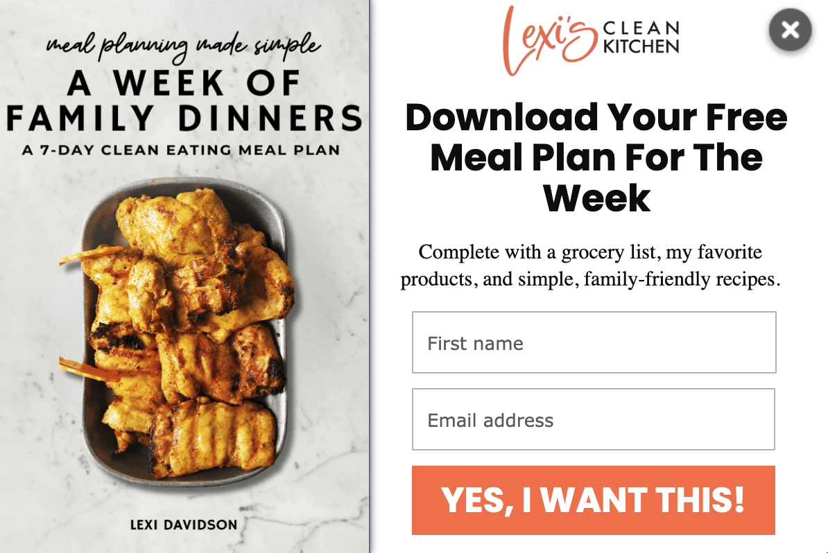 Lexi’s Clean Kitchen email opt-in example.